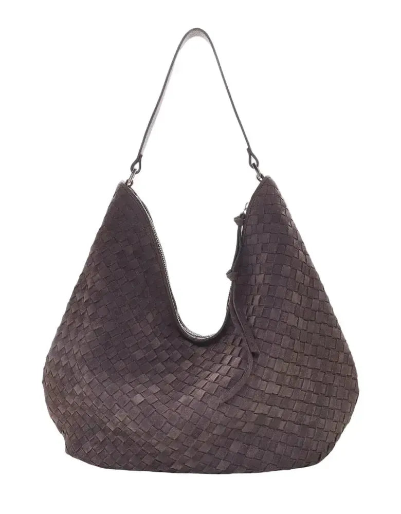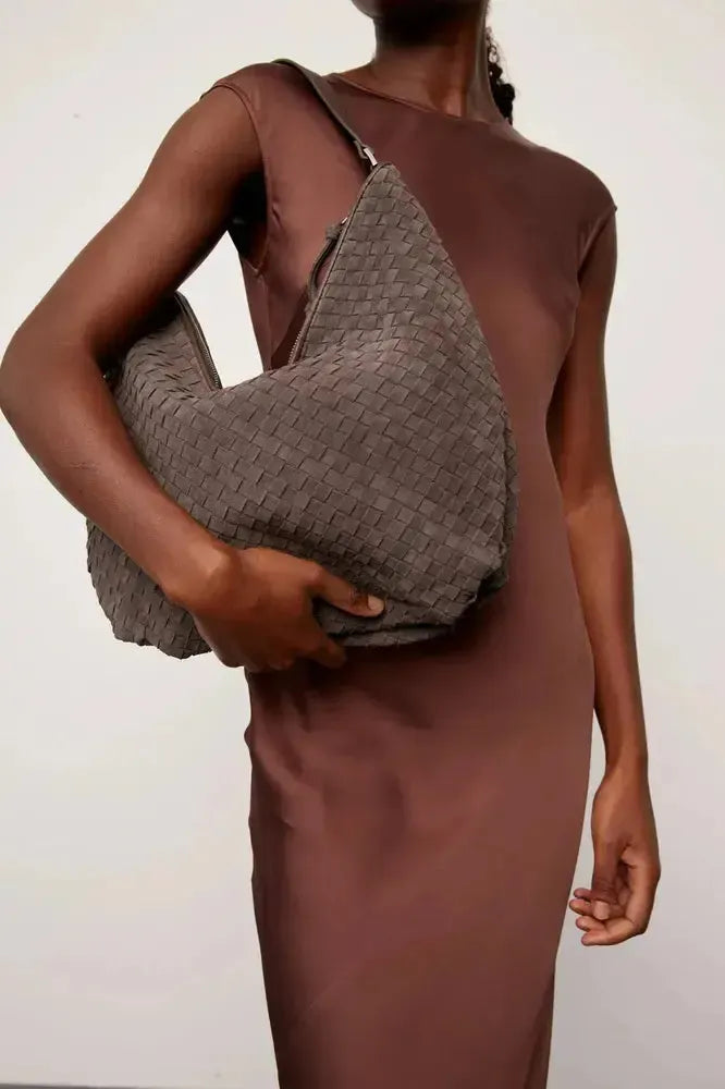 En elegant skulderveske i skinn med en sofistikert flettet struktur som kombinerer stil og funksjonalitet. Et stort åpent rom som gjør det enkelt å få oversikt og se hva du har i vesken, med god plass til hverdagslige nødvendigheter. En liten innvendig glidelåslomme som gjør det enkelt å finne mindre gjenstander som nøkler og mobiltelefon. Vesken er behagelig å bære over skulderen takket være den smarte formen. Vesken lukkes med glidelås øverst og har et fast bærehåndtak. Perfekt for både jobb og fritid.