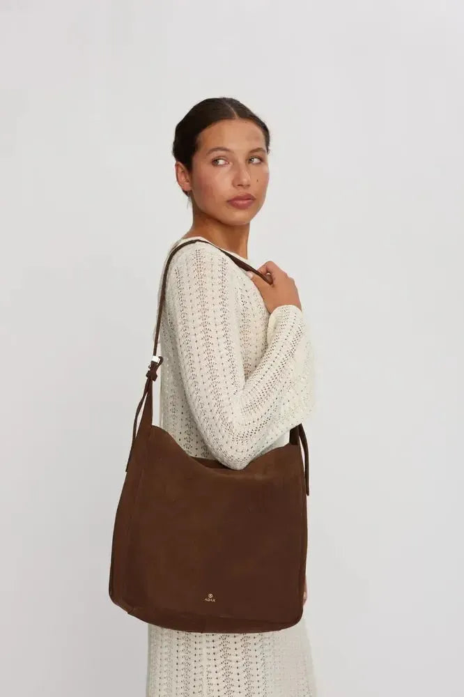 Elegant og romslig skulderveske i mykt semsket skinn med et rent og minimalistisk design. Den har et stort hovedrom med glidelås, en innerlomme med glidelås for småting som nøkler og telefon samt en justerbar skulderrem. Perfekt for både jobb og fritid.