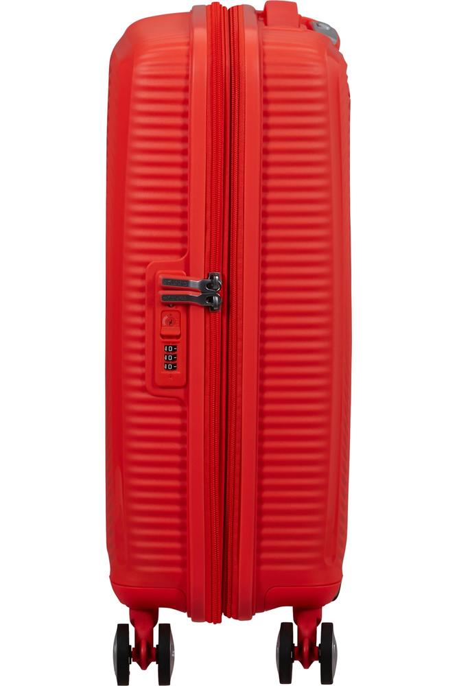 American Tourister Soundbox koffertene er produsert i polypropylen som er et slagfast og meget sterkt materiale. Denne utvidbare kabin kofferten i har 4 - 360° doble spinner hjul som gjør kofferten lett å trille i alle retninger. Ekspansjonen gjør at du får ekstra plass i kofferten når du trenger det. Solid glidelås og TSA kombinasjonslås gjør denne lette håndbagasje kofferten til et veldig godt valg for en kort tur. American Tourister er et varemerke eiet av Samsonite.