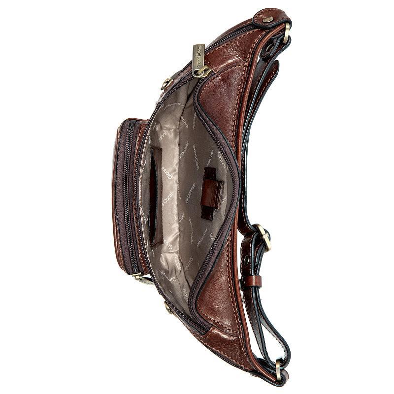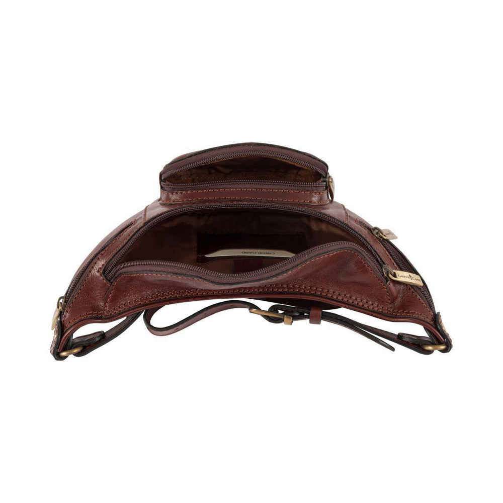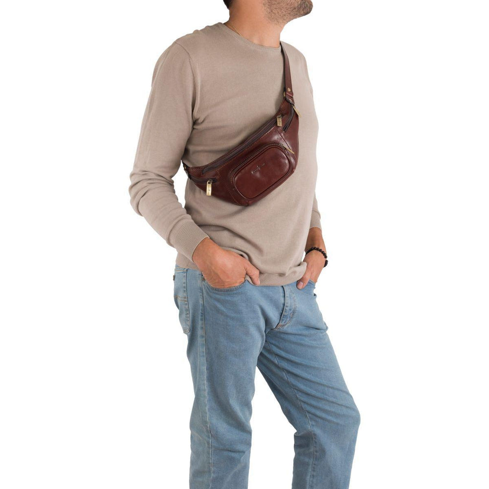 Denne midjevesken fra Gianni Conti er laget i vegetabilsk lær Pontevecchio. Sertifisert lær fra Toscana slik bare italienere kan lage det.  En hendig og praktisk midjeveske som rommer mye. Fem glidelåslommer og frontlomme med plass til visittkort og penneholder.