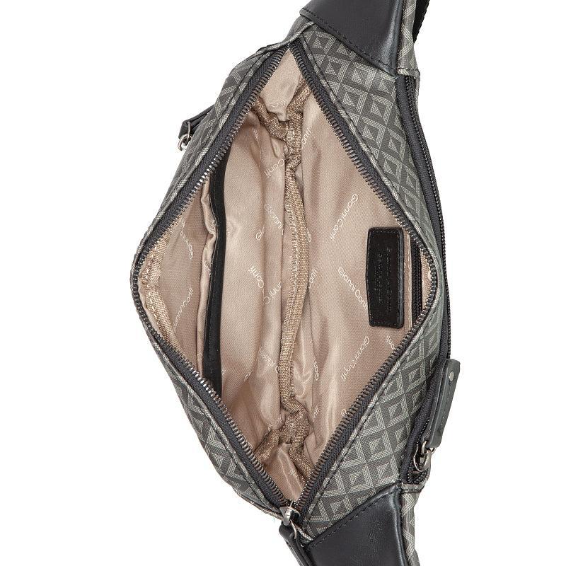 Denne midjevesken fra Gianni Conti er laget i canvas med skinndetaljer. Lukkes med glidelås. Innvendig har den et romslig rom med en glidelåslomme. På forsiden og baksiden er det glidelåslommer for rask tilgang. Utstyrt med en lang og justerbart nylonbelte. Et praktisk og funksjonelt tilbehør for daglig bruk.