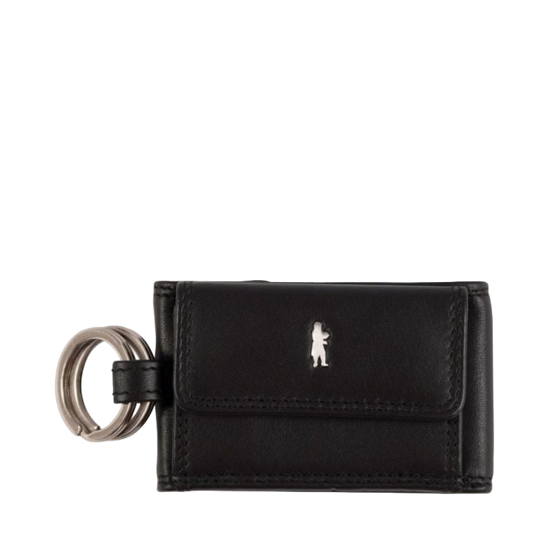 Denne svarte nøkkelpungen er produsert av kvalitetslær og innehar to nøkkelringer. Plass til mynter og rom for småting. Leveres i gaveeske!