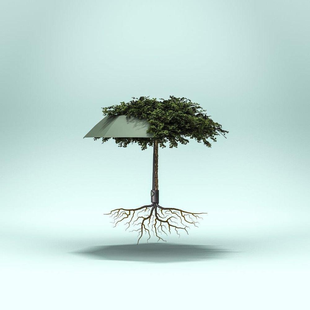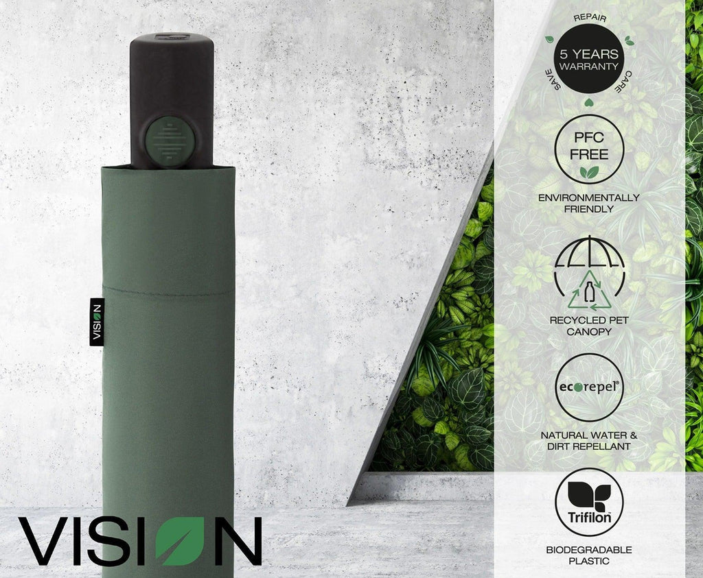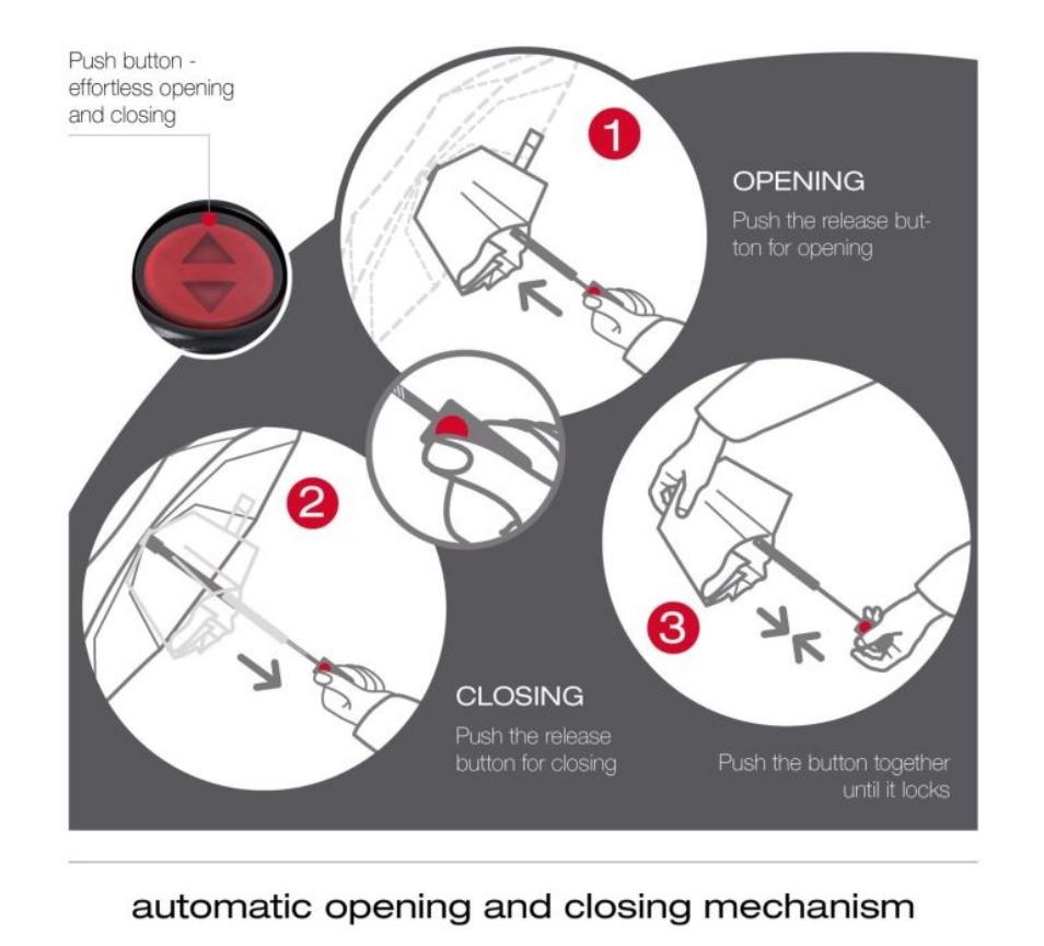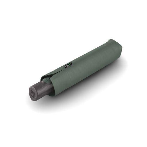En 100% biologisk nedbrytbar plast fra Trifilon brukes til håndtak, løper og topp, og unngår dermed å forurense havene våre med skadelig mikroplast. Paraplyduken er laget av resirkulert PET og er belagt med PFC-fritt vann og smuss avvisende middel fra ecorepel®. Paraplyen har automatisk åpning og lukking som gjør at du både kan åpne og lukke den med en hånd.