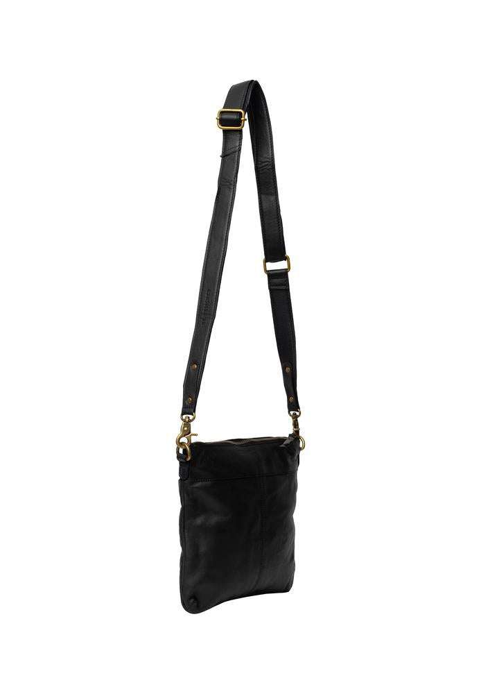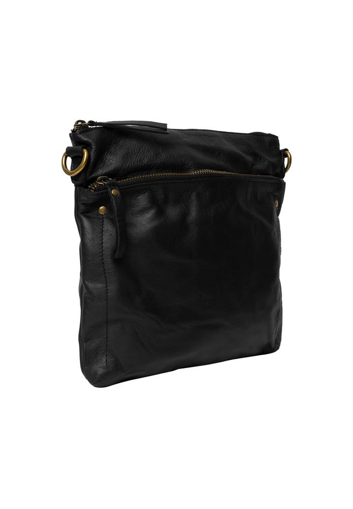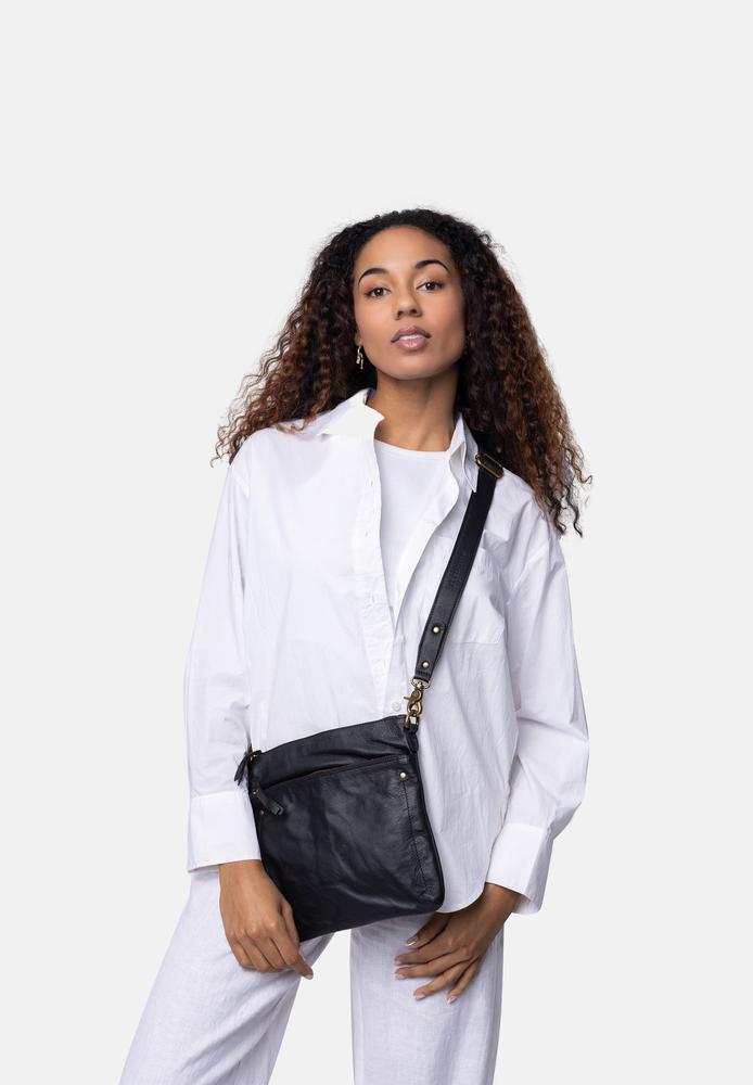Jara Big er en stilig, håndlaget crossbody-veske laget av 100 % ekte 'Urban'-skinn. Den har et romslig design med to glidelåslommer og en justerbar stropp.