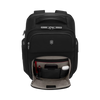 Ryggsekken kombinerer stil, eleganse og praktisk funksjonalitet. Nøye designet og konstruert for å optimaliserer plass og tilgang, samt sikre gjenstander ved hjelp av innvendig organisering, et rom med ripebestandig fôr og en skjult utvendig lomme. Maksimer pakkingen med den utvendige flaske- eller paraplylommen og reis komfortabelt takket være ryggsekkens sveitsiske skulderstropper, topphåndtak og vannavstøtende utside. Deluxe-ryggsekken oppfyller alle kravene for allsidig forretningsreise.